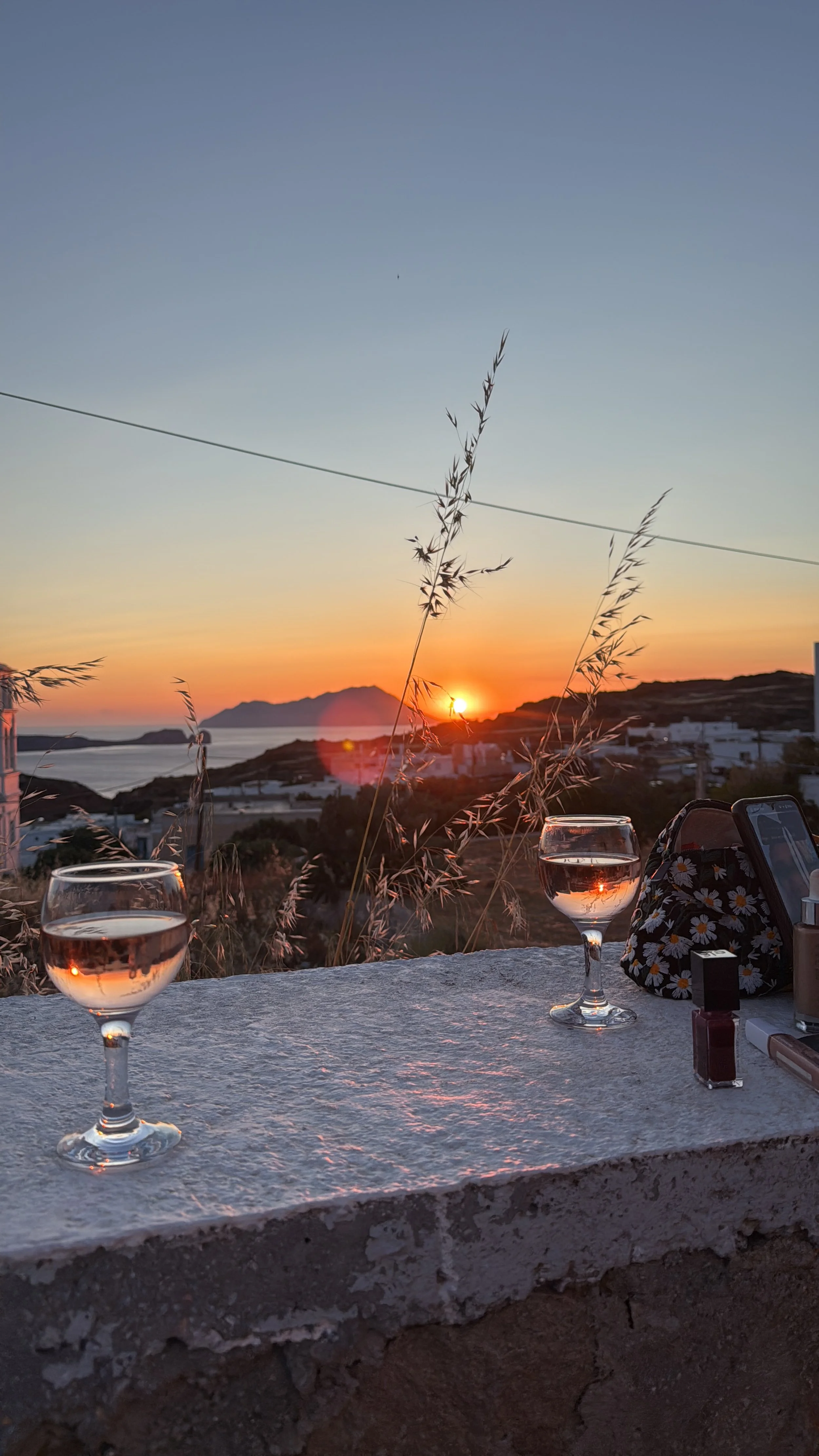 Milos had some of my favorite food. It is very hard to find breakfast, but we found this local restaurant and I got to have one of the best crepes ever. It was filled with fresh fruit and chocolate. My cappuccino was delicious and tasted stronger than our espresso back in the states. This was also where we discovered you need to ask for the check to finish your meal. We sat for another hour waiting for our server to bring the bill, but turns out you need to ask or they will respect your time. This is one of the things I love about Greece is how patient and laid back everyone is. The states need to take some notes on how to calm down and move slower. For dinner we walked down the stairs from our house to this cobblestone town that overlooked the hills and the water. I knew this was the time I had to try lamb. The lamb I had at this restaurant was mouth watering and so juicy. The meat fell apart and had so much flavor. for dessert we had homemade macarons and other Greek chocolates. The servers were so kind that we got free appetizers and a free digestive shot at the end of our meal. They were so generous on this island. Everyplace we ate at gave us something on the house to try.